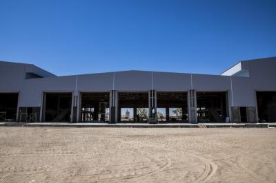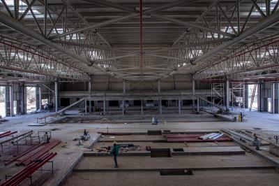 وأوضح باقر أنّ "أعمال البُنى التحتيّة الخاصّة بالورشة والأسس والهيكل الحديديّ للأعمدة والسقوف والجسور للورشة قد أُنجِزت، بالإضافة إلى أعمال التغليف بـ(السندويج بنل) المطليّ بطلاءٍ مضادٍّ لحرائق السقوف والجدران الخارجيّة".