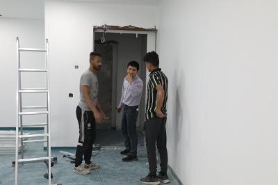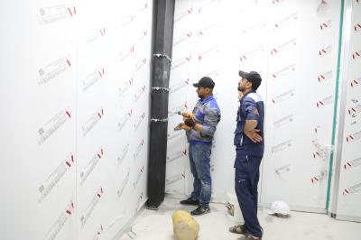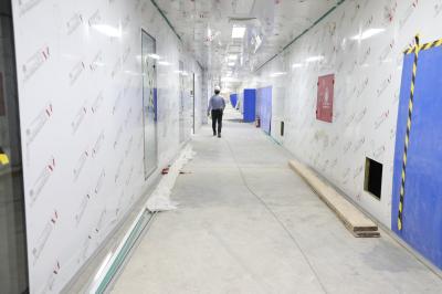 وقال المشرف العام على المشروع المهندس حيدر شاكر إن "المشروع حقّق نسب إنجاز متقدّمة ووصل إلى المراحل الأخيرة من نصب القواطع العقيمة، التي هي عبارة عن الجزء الذي يحيط بمناطق الإنتاج، إضافةً إلى الأثاث ومعدّات المختبرات".