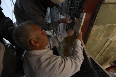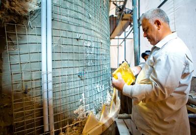 The head of the engineering projects department at the Al-Abbas's (p) holy shrine, Engineer Dea' Majeed Al-Sa'egh stated at Al-Kafeel Network: "There are many projects carried out by our department inside the holy shrine of Abu Al-Fadl Al-Abbas (peace be upon him), according to the placed plan for this purpose, some are completed while others are under construction, including our project, which will bring considerable benefits. Among the most important conducted works are uprooting the old tiles and the maintenance of the mall, which is a very important stage as the old used brick and all ancient foundations are of mud entrenched beneath the soil and there is no insulating layer between it and the ground, which explained the damage that reach almost three to four meters from ground level, and this moisture impacted negatively on the wall and on the surface of the gilded copper plates, leading to its oxidation and blackening. so the walls have been maintained and completely separated from the second layer with three to four other layers; the weather code layer, Ibosen layer, then weather code layer and the layer of the knot-work, all of which are a modern insulating materials, then the coppered gilded tiles are pasted on the wall of the dome fronting the gate of Al-Qilbah."