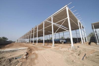 وتابع الصائغ: "استُخدِمَ في البناء نظامُ الستيل ستركشر (Steel structure)، وكلّ قاعة مخزنية يبلغ ارتفاعها (9م) ويستند سقفها على ركائز معدنية يبلغ عددها (56) تمّ تقسيمها وفقاً لمساحات محدّدة تفصل بينها قواطع كونكريتية لتُغلّف بعدها بنوعيةٍ خاصة من مادة (السندويج بنل) المقاومة للحرائق والظروف الجوية والتي تمتاز بعزلٍ حراريّ تفصل بينها نوعية أخرى من قطع (السكاي لايت) لتوفير إضاءة إضافية".