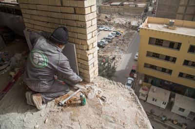 وأضاف: "إنّ العمل بهذا المشروع كان تسلسلياً، أي عند الانتهاء من أحد الطوابق بمجرّد الانتقال الى الطابق الذي يليه تجري الأعمال المدنية والميكانيكية للمشروع وتشمل أعمال التقطيع وتغليف الجدران وإكساء الأرضية وأعمال التأسيسات للمنظومات (الكهربائية – التبريد – الإطفاء – الحريق – الإنذار – الحريق - وغيرها) وفي نفس الوقت أعمالها متواصلة أيضاً لكنّها تحتاج الى مزيد من الدقة في العمل لتتمّ بعدها المباشرة بأعمال الإنهاءات والواجهات الخارجية، وتجري هذه الأعمال كافة بعد الـتأكّد من مـطـابـقـة الأعمــــال المنجزة للتصاميم المصادق عليها مع مـطـابـقـة المواد الداخلة في الإنشاء للفحوصات المختبرية والسيطرة النوعية".