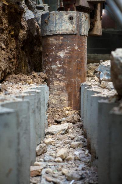 وأضاف: "تعتبر المرحلة التي تمّ الانتهاء منها من أهمّ المراحل وهي في داخل الصحن الشريف، وكما تمّ تنفيذها سابقاً في إنشاء سرداب الإمام الجواد(عليه السلام) وهي عملُ جدارٍ كونكريتيّ عبارة عن ركائز كونكريتية تنزل لعمق (12متراً) تحت الأرض، وتحيط بالموقع المراد حفره وعمل السرداب فيه بالكامل، وهي في الحقيقة تكون أطول عملية من ناحية الفترة الزمنية، فهي عبارة عن (بايلات) ركائز كونكريتية تُحفر ابتداءً بعد سحب المياه الجوفية، وبعد ذلك يتمّ استخراج الأطيان والمواد العالقة وتنزيل هيكل حديدي بنفس حجم الحفر ويتمّ تسليح هذه الركائز داخل الهيكل الحديديّ ثم تأتي عمليّة صبّها بالخرسانة".