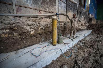 وبيّن الصائغ: "باشرنا الآن بالمرحلة الثانية وهي مرحلة حفر السرداب، حيث أصبح لدينا جدارٌ كونكريتيّ كامل محيطٌ به من جميع الجهات، ونحن نحفر على عمق (5,5م) ليكون لدينا ارتفاعٌ صافٍ بعمق نحو (7م) من مستوى أرضية الصحن الشريف، على أن تغطّى الأرضية بمادة حصى الجلمود وبارتفاع (50سم) ثمّ طبقة من (السسبيس)، بعد ذلك يتمّ نصب وتسليح الجدار الكونكريتي الرئيسيّ للسرداب، وهذا الجدار يعطينا استقامة أبعاد السرداب ونأخذ من خلاله الوزن المضبوط، ونحمي هذا الجدار بطبقات من القير واللبّاد لمنع تسرّب الرطوبة، ثمّ نقوم بعملية تسليح الأرضية وصبّ الجدران ونستمر بهذه الحلقات حتى نصل الى صبّ السقف، وكما في إنشاء السرداب السابق يتمّ على شكل مراحل متسلسلة وتنفّذ تباعاً".