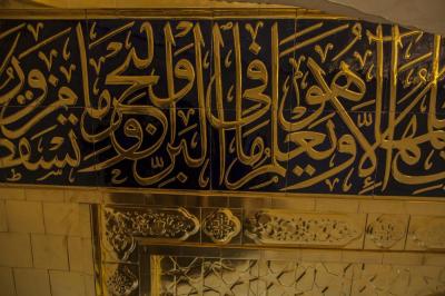 وأردف الصائغ: "إنّ الكتيبة القرآنية التي تعلو جدار الطارمة تميّزت كذلك بميزاتٍ تختلف جذرياً عن الكتيبة القديمة، حيث استُخدمت فيها الخطوطُ والزخارفُ والآياتُ القرآنية المنقوشة على الذهب المطعّم بالمينا الحارّة، والتي تُعتبر من أجود أنواع المينا التي تتفاعل مع النحاس، حيث تمتاز بمقاومتها وبريق لونها".