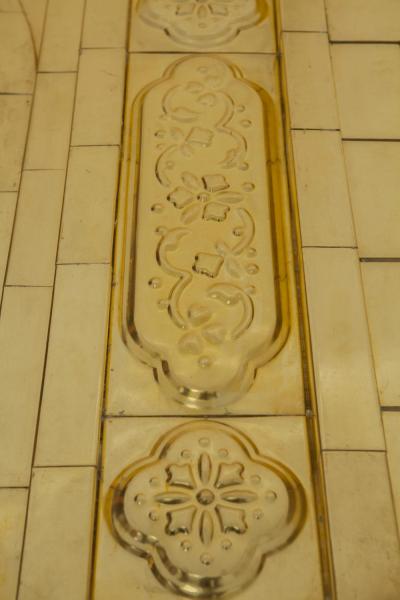 وبيّن الصائغ: "أنّه تمّ إكساء هذا الجدار بالبلاطات (الطابوقات) الذهبية الجديدة بعد تركيب طبقات الهارب وطلسها بمادة الإسمنت بمساحةٍ تقدّر بـ(350م2) واستُخْدِم في عمليات التذهيب الذهب عيار(24) بقياساتٍ مختلفة وبوزن (10غرامات) من الذهب الخالص لكلّ بلاطةٍ ذهبية، والتي يبلغ سُمْكُ الواحدة منها (2ملم) باستخدام أفضل التقنيات من ناحية العمر الافتراضيّ وهي تقنيةُ الطَرق على جلد الغزال، وإنّ البلاطات المُصنّعة تخضع لفحوصاتِ جهاز التقييس والسيطرة النوعية في وزارة التخطيط العراقية، وإنّ عملية ربط هذه البلاطات الذهبية كانت باستخدام طريقة الوصلة بواسطة المسامير اللولبية (البراغي)، وهي من الطرق التي لا تؤثّر عليها ولا على مظهرها الخارجي، عكس الطريقة القديمة وهي طريقة الكبس (البراجم)، والتي لها عيوبٌ تظهر مستقبلاً على لون وشكل البلاطة الذهبية".