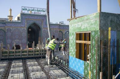 وذكر باقر أنّ "الملاكات الهندسية تواصل أعمال تقطيع الطابوق في الأجزاء المكتملة من الصحن، إلى جانب تثبيت المسارات الخاصّة بتمديد أنظمة الخدمات والمنظومات في السرداب، ضمن مراحل متقدّمة من المشروع".