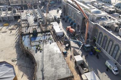 يواصل قسم المشاريع الهندسية في العتبة العبّاسية المقدّسة، أعمال صبّ المساحات التكميلية لسقف سرداب صحن أمّ البنين(عليها السلام) بواقع 700 مترٍ مربّع.