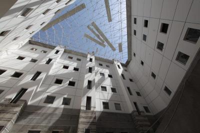 وأوضح الصائغ: "الأعمال التي يجري فيها العمل حالياً هي أعمال السقوف الثانوية وأعمال تغليف المداخل الرئيسية وجدرانها إضافةً الى بعض أعمال الإنهاءات بنسبة (75%)، كذلك تشهد أعمال المرآب الخارجي بما لا يؤثّر على سير العمل حيث وصلت نسبةُ الإنجاز فيه الى (20%) تقريباً وهذا المرآب يستوعب من (150) الى (200) عجلة".