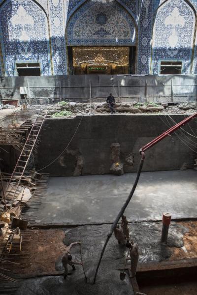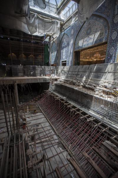 وأضاف الصائغ: "مرّت مراحل العمل هذه بعددٍ من الفقرات منها رفعُ الطبقة الأوّلية من التربة وتثبيت أعمدة كونكريتية بطريقة متداخلة مع بعضها بحدود (10سم) وبعمق (12م) تحت الأرض لتشكّل سوراً يحيط بالسرداب على عمق (12متراً) تحت الأرض وتسليح هذه الركائز ليتمّ صبّها بالخرسانة، وإكساء الأرضية بمادة حصى الجلمود على ارتفاع (50سم) ثمّ طبقة من (السسبيس)، بعد ذلك تمّ نصب وتسليح الجدار الكونكريتي الرئيسيّ للسرداب، وغُطّي هذا الجدارُ بطبقاتٍ من القير واللبّاد لمنع تسرّب الرطوبة، ثمّ بوشر بعمليّة تسليح الأرضية وصبّ الجدران واستمرّت هذه الحلقات حتى الوصول الى صبّ السقف، هذا بالإضافة الى أعمالٍ أخرى اجتمعت فيما بينها بطرقٍ هندسيةٍ وفنيةٍ للخروج بسردابٍ ذي سقفٍ وجدارٍ كونكريتيّ يعمل على فكّ زخم الزائرين وزحامهم من جهة، ومن جهةٍ أخرى تدعيم وإسناد لجدار العتبة المقدّسة المحيطة به من جهتي الحرم والحائر".