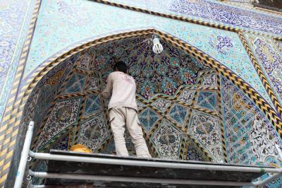 وتابع الصائغ: "إنّ أعمال صيانة وترميم أواوين الطابق الأرضي البالغ عددها (57إيواناً) كانت على عدة مراحل تضمّنت المرحلة الأولى قلع الكاشي الكربلائي القديم بانتظام ومن ثمّ إخراج الطابوق المستهلك, وبعدها تثبيت الإطار وعمل أقواس متداخلة تُشكّل ما يُسمّى الزخرفة للأواوين وباللّونَيْن الأصفر والأسود, والذي يكونُ شكل التقوّس فيه بعدة أشكال وهو جزءٌ جميل يُعطينا الشكل المعماريّ التراثيّ القديم".