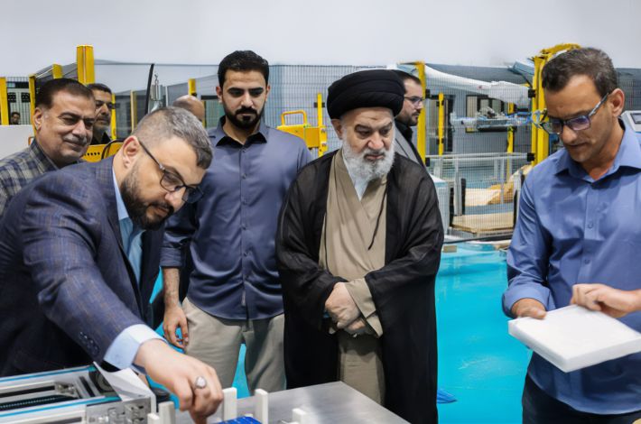 واطلع سماحته على مراحل الإنتاج، بدءًا من تجهيز المواد الأولية وصولًا إلى عمليات التجميع والفحص والسيطرة النوعية.