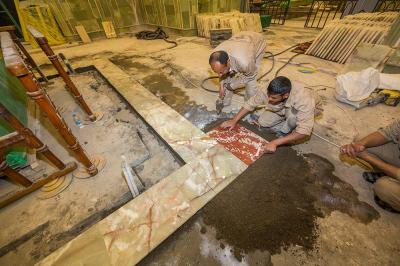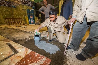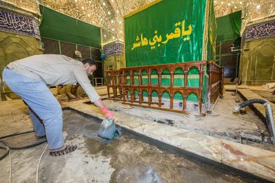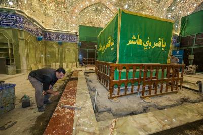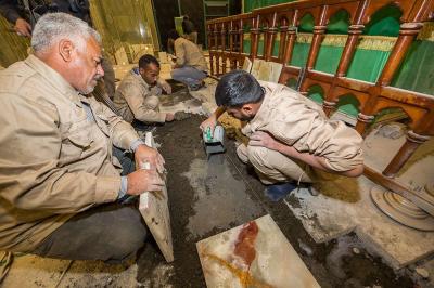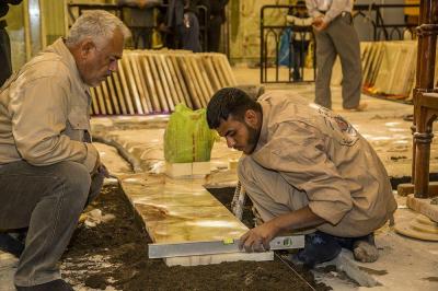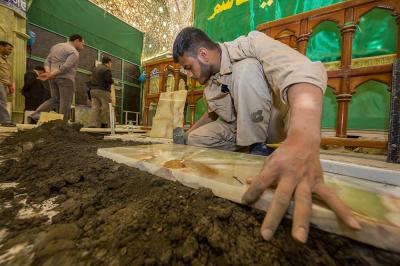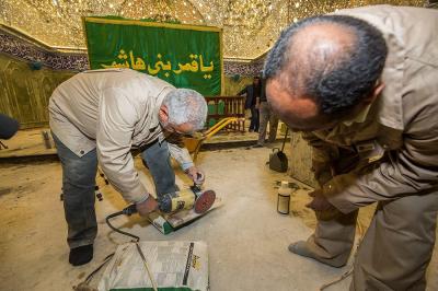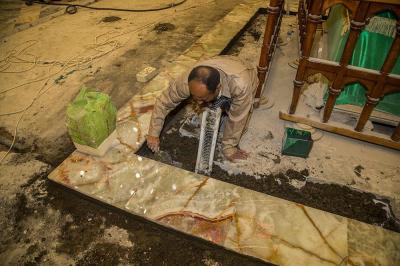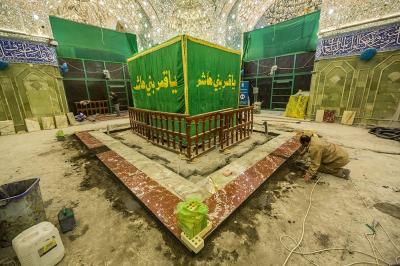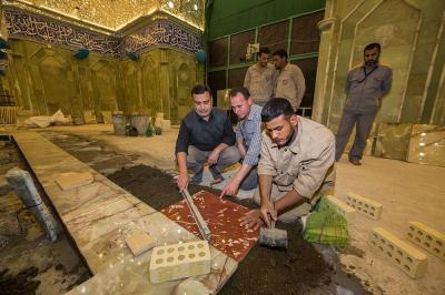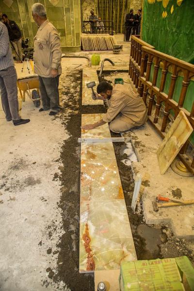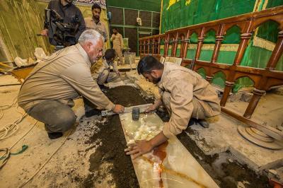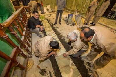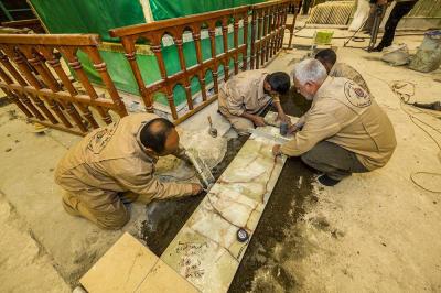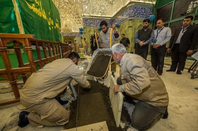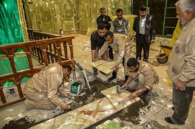 تشرّف الأمينُ العام للعتبة العبّاسية المقدّسة السيد محمد الأشيقر بوضع أولى بلاطات الحرم الجديدة إيذاناً بالبدء بأعمال إكسائه بالمرمر الجديد بعد أن تمّ الانتهاء من قلع بلاطات المرمر القديم، وتنضوي هذه الأعمال ضمن مراحل تركيب ونصب الشبّاك الجديد لضريح أبي الفضل العباس(عليه السلام) الذي من المزمع افتتاحه في الثالث عشر من شهر رجب ذكرى ميلاد أمير المؤمنين(عليه السلام).