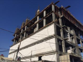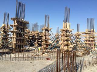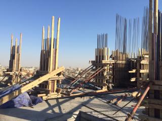 وأضاف: "بموازاة هذه الأعمال تُجرى أعمالٌ أُخرى تسير بوتائر متصاعدة أيضاً وهي أعمال تقطيع الهيكل الكونكريتي بمادّة البلوك الإسمنتي المجوّف وتقسيمه وفقاً للمخطّطات المعماريّة ‏الموضوعة له".