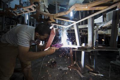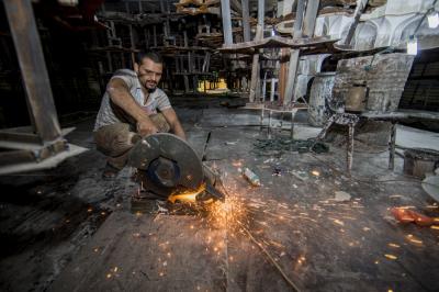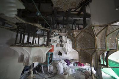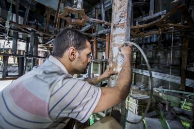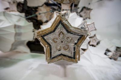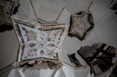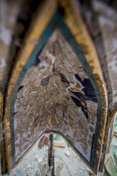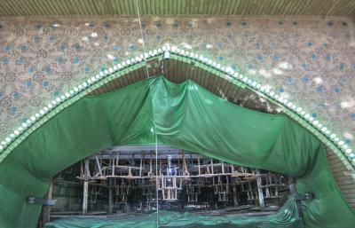 بعد أن شارفت أعمال تركيب وتثبيت نقوش وزخارف بوّابة قبلة أبي الفضل العبّاس(عليه السلام) على الانتهاء من الداخل، انتقلت الأعمال الى الجزء العلويّ منه (سقف البوّابة) والذي يعتبر من الأجزاء المهمّة ويحتوي حسب التصاميم الخاصّة به على نقوش وزخارف ذات تصاميم تحتاج الى دقّة تنفيذيّة ومهارة عالية، حيث يضمّ العديد من الأشكال الهندسيّة المعماريّة الإسلاميّة من نقوش ومقرنصات ومتدلّيات جمعت بين أصالة الموروث القديم وحداثة التنفيذ.