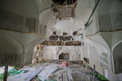 مبيّناً: "يضمّ سقف بوّابة القبلة العديد من النقوش النباتيّة والزخارف والمتدلّيات (وهي الرؤوس المتدلّية، التي تشبه خلايا النحل)، والتي تمّ عمل قوالب حديديّة لها ثبّتت بسقف البوابة لتُكسى بعد ذلك بموادّ جبسيّة خاصّة تُنقش عليها نقوش ورسوم نباتيّة معرّقة مستوحاة من نقوش العتبة المقدّسة، وتؤطّر بإطارات مذهّبة وحسب تصميم كلّ جزء، حيث تمّ توزيعها على جميع مساحات السقف العلويّة للبوّابة، وإنّ الأعمال جارية حسب المدد الزمنيّة المتّفق عليها، ولدقّة تنفيذها فإنّها تحتاج الى وقت زمنيّ طويل".