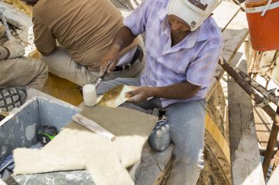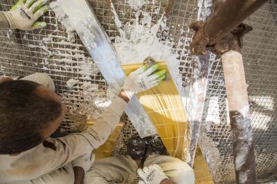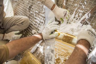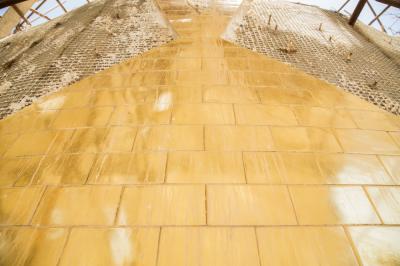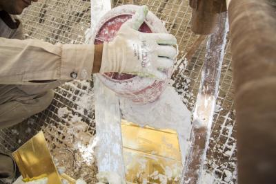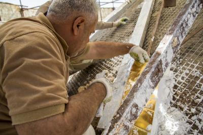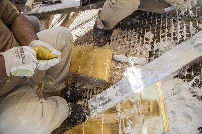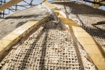 The cladding process is done using a technical method that makes these plates, whether the golden ones or the Kashi Karbala'i gain adhesion strength between each other and with the dome's building, making them as one piece, which is the same method used by the technical and engineering staff of the al-Abbas's (p) holy shrine in many projects inside and outside the holy shrine.