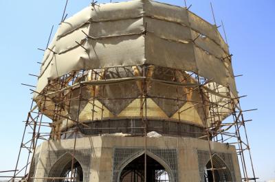 Most of the gilded plates are finished with ribbons and geometric shapes to cover 80 square meters of the dome with 21 kg of pure gold in form of plates. The remaining parts of 200 square meters will be covered with the streaky Kashi Karbala'i inlaid with gold by 30%.