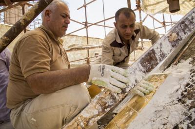 It is worth mentioning that the Honorable Secretariat of the Great Sahla Masjid has entrusted the design and covering the Dome of Maqam of Imam al-Mahdi (may Allah hasten his holy reappearance) to the al-Abbas's (p) holy shrine, in recognition and appreciation of the efforts of the holy shrine's staff who are Iraqi competencies specialized in this kind of professional craftsmanship, which was for many years, implemented only by foreign companies. The al-Abbas's (p) holy shrine has been able to establish workshops and factories that are integrated and specialized in the work of gilding in many painting ways, hot and cold enamel painting workshops and factories of shrines, grids, Muqarnas, digging, sculpture, etc.