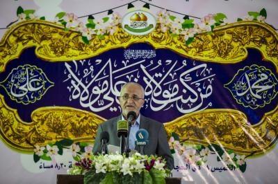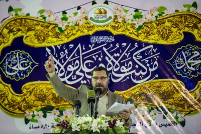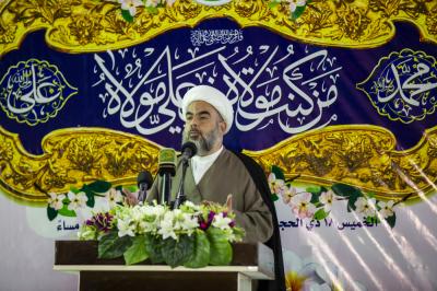 وبيّن: "إنّ أميرَ المؤمنين(عليه السلام) هو الذي أوجدَ واقعةَ الغدير، وذلك لأنّ مقامَه السامي كان السببَ الرئيسَ في اختيارِ السماءِ له قائداً وحاكماً على هذه الأمّةِ بعد الرسول(صلّى الله عليه وآله وسلم)".