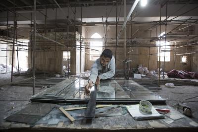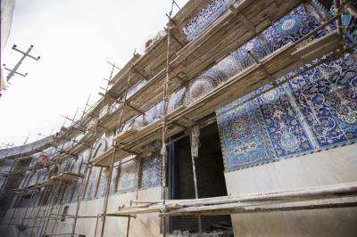 - Fortsetzung der Beschichtungsarbeiten der vorderen und hinteren Fassaden mit Kashi Al-Karbalai