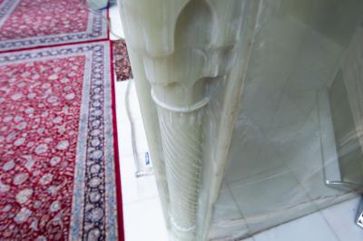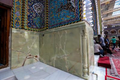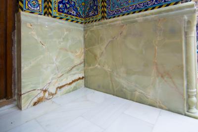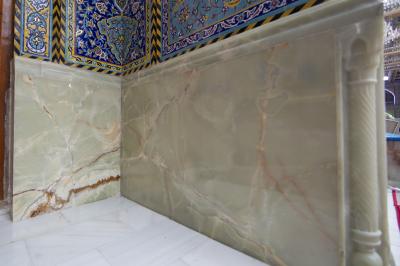 مبيّناً: "أنّ المرمر الجديد الذي ستتمّ أعمالُ الإكساء به هو من نوع (ملتي الاونكس) وأُجريت عليه عدّة فحوصات فنّية وهندسيّة من ناحية التحمّل وثباتيّة اللّون والسُّمْك، إضافةً الى مواصفاتٍ أخرى جعلت هذه القطع المرمريّة غاية في الجمال والروعة، مع إضافة أشكال زخرفيّة مرمريّة تكون على جانبي كلّ إيوان".