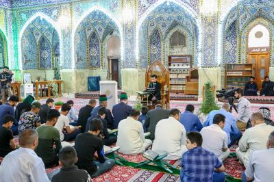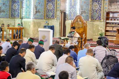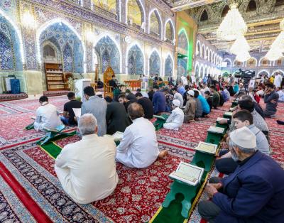 هذا وقد شاطر الزائرون الحاضرين في هذا المحفل وهم يحتشدون حول العرش ويتدبّرون بآيات الله البيّنات، التي تصدح بها حناجرُ القرّاء في تلك الرحاب الملكوتيّة، فضلاً عمّن يستمع لها مباشرةً عبر بثّ قناة كربلاء للقرآن الكريم.