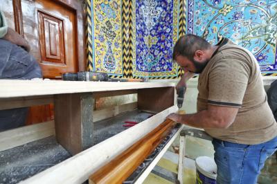 المباشرةُ بتركيب أشكالٍ زخرفيّة لشبابيك أواوين صحن مرقد أبي الفضل العبّاس (عليه السلام)
