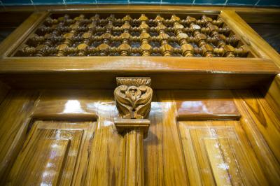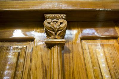 وأضاف: "تمّت صناعةُ هذه الشبابيك في ورش القسم من الخشب ذي النوعيّة الجيّدة، حيث تمّ أخذ القياسات اللّازمة لكلّ شبّاك، والذي يقع في منتصف الجزء العلويّ للإيوان من الداخل، الشكل الجديد هو عبارة عن شبّاك مقوّس يحتوي بداخله على زخارف من الخشب، اتُّخِذت على شكل شبّاك مرقد أبي الفضل العبّاس(عليه السلام)، ويُحاط هذا الشبّاك بإطارٍ يبلغ عرضُه نحو (10سم) ويبلغ سُمْكُه نحو (7سم)، وهو مغلّف من الداخل بطبقةٍ تسمح بمرور الضوء من خلاله".