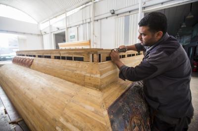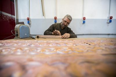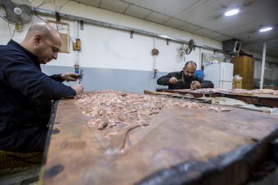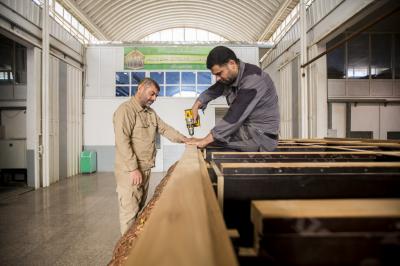 This masterpiece will be added to the rest of the artifacts that were manufactured in this factory by Iraqi hands who are loving the family of the Prophet (may God’s prayers and peace be upon them), after contracting to manufacture the ceiling and grid's crown of the holy shrine of Lady Zaynab (peace be upon her) between the al-Abbas's (p) holy shrine and one of the servants of Ahl al-Bayt (peace be upon them).