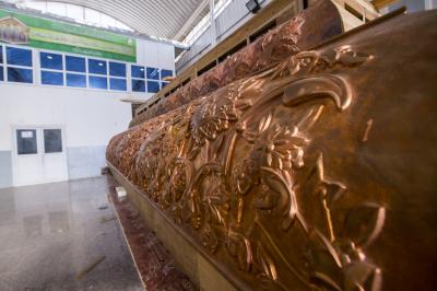 - Several minerals were used in its manufacture, including (stainless steel) and copper, in addition to Burmese wood from which we manufactured the wood frame bearing the inscriptions and motifs, in addition to the gold with an amount estimated at (2 kg).