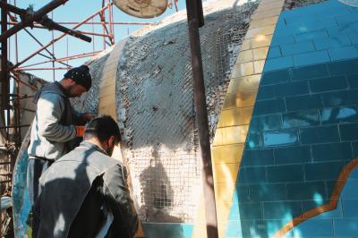 هذا بحسب ما أدلى به لشبكة الكفيل رئيسُ قسم المشاريع الهندسيّة في العتبة العبّاسية المقدّسة المهندس ضياء مجيد الصائغ، وأضاف: "المرحلة الثانية من هذا المشروع هي مكمّلة لمرحلته الأولى التي شملت تثبيت الكتيبة القرآنية التي تحيط بالقبّة من الأسفل، إضافةً الى تثبيت الأشرطة التي تتّخذ من سطح الكتيبة منطلقاً لها (بدايتها عبارة عن مثلّثات)، وتصل الى أعلى نقطة في القبّة، وهذه الأشرطة كُسيت بالبلاطات الذهبيّة لتتواصل الأعمال بعد ذلك في مرحلتها الثانية التي تشمل إكساء المساحات المحصورة بين هذه الأشرطة الذهبيّة بالكاشي الكربلائيّ المعرّق، وحسب التصاميم المعدّة لهذا العمل التي هي عبارة عن زخارف نباتيّة ونقوش إسلاميّة مستوحاة من المسجد المعظّم".