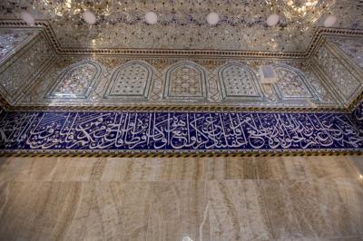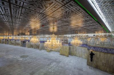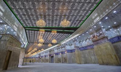 Er fügte hinzu: "Die letzte Etappe bestand darin, die äußeren und inneren Fassaden des Schreins mit dem verzierten Kashi aus Karbalaa zu verkleiden, die Decken wurden mit Marmor und kunstvollem Glas mit Reliefs, Motiven und sehr eindrucksvollen Schriften geschmückt."