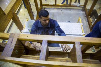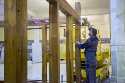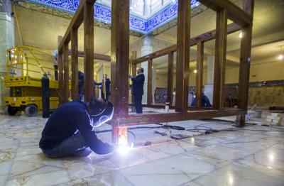 أنهت الملاكاتُ الفنّية العاملة في قسم صناعة شبابيك الأضرحة الشريفة وأبوابها المطهّرة التابع للعتبة العبّاسية المقدّسة، مرحلةً مهمّة من مراحل تنصيب الهيكل الخشبيّ لضريح العبد الصالح أثيب اليمانيّ المعروف بـ(صافي صفا) -رضي الله عنه- في محافظة النجف الأشرف، وهي تركيب وتثبيت أعمدته الرئيسيّة والجانبيّة وتثبيتها بالأرضيّة الخرسانيّة المخصّصة لها، بعد أن تمّ أخذ كافّة الاعتبارات الفنّية والهندسيّة من أجل تركيب هذه الأجزاء المهمّة.