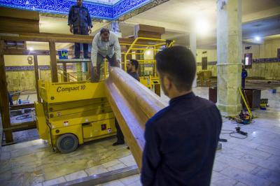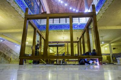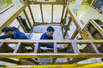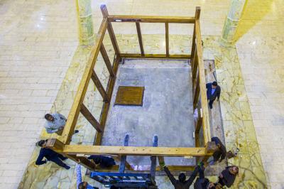 مضيفاً: "حال الانتهاء من هذه الأعمال التي تحتاج الى دقّة في العمل سيتمّ الشروع بتركيب القطع المرمريّة التي يُطلق عليها (الشذروان)، والتي تقع أسفل الهيكل الخشبيّ للشبّاك وتُحيط به من جميع جهاته، لتشكّل فيما بينها وبين الشبّاك الشريف لوحةً فنيّةً غاية في الرّوعة، من ثمّ سيتمّ الشروع بتركيب الأجزاء العلويّة للهيكل الخشبيّ وتركيب الأجزاء المعدنيّة للشبّاك، لكون أنّ الأعمال التي تمّ ذكرها هي الأساس الذي ترتكز عليه أعمال تركيب أجزاء الشبّاك الأخرى".