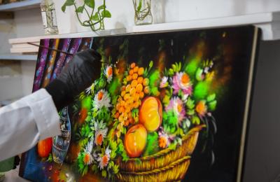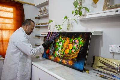 الفنّانُ التشكيليّ الأستاذ كمال الباشا بيّن عملَه في هذه الورشة قائلاً: "هناك ثلاثة محاور هي أساسٌ علميّ في هذه الورشة، وهي التعتيق والترميم والرسم".