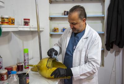 تضمّ ورشةُ الصبّ والقولبة التابعة لمتحف الكفيل للنفائس والمخطوطات في العتبة العبّاسية المقدّسة، ملاكات ذات خبرة في مجال التحف والنفائس، فهذه الورشة تحرص على تقديم صورٍ ونسخٍ مشابهة لمقتنياته الأثريّة الفريدة، لإتاحة الفرصة أمام الزائرين الكرام من أجل اقتنائها، فضلاً عن عرض اللّوحات الفنيّة المميّزة في المعرض الجديد الواقع في شارع صاحب الزمان(عجّل الله فرجه الشريف)، وهذه النسخ تحتاج إلى مهاراتٍ خاصّة من أجل إنجازها.