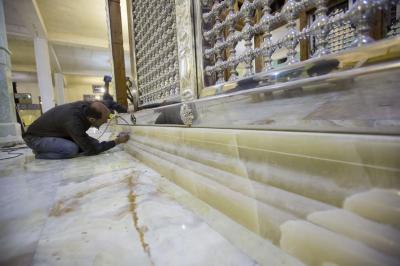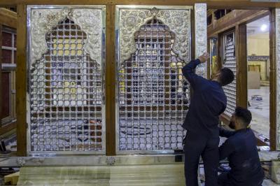 Les travaux se poursuivent jusqu'à l'achèvement de l'installation de tous les joints de la grille du tombeau d'Al-Saleh Al-Atheb Al-Yamani, dit (Safi Safa) - que Dieu soit satisfait de lui - dans la province de Najaf, selon le calendrier prévu pour cela.