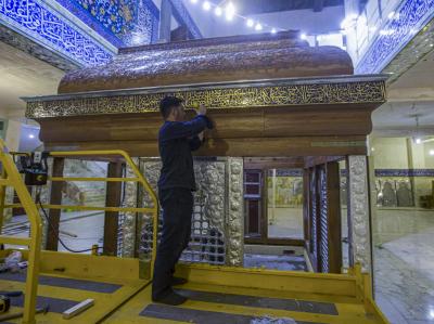 (8 Joumada II 1441 AH) correspondant au 3 Février 2020, des parties de la grille arrivée à son lieu de fabrication dans la ville sainte de Karbala.