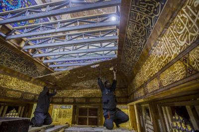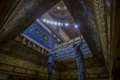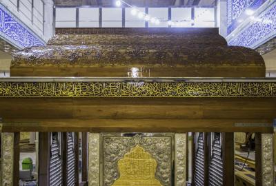 (13 Joumada II 1441 AH) correspondant à (8 février 2020), le personnel artistique a achevé l'installation de la frise décorative dorée (frise) située en haut de la fenêtre.