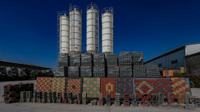 Concerning the concrete paving blocks (muqarnas), he explained: "The factory produces nine types of it distributed in different engineering forms and with a thickness of (8 cm, 6 cm)."