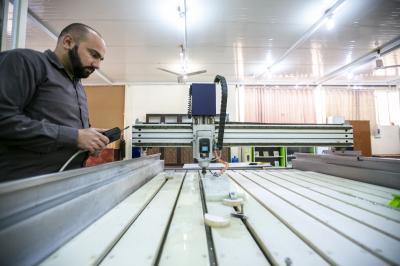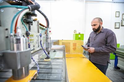 - ترجمةُ مخرجات تصاميم الزخارف والنقوش والخطوط واقعيّاً على القطع، بواسطة ماكينة الـ(cnc) التي تعمل بتقنيّة الليزر، وهي ماكنةٌ حديثة ومتطوّرة.