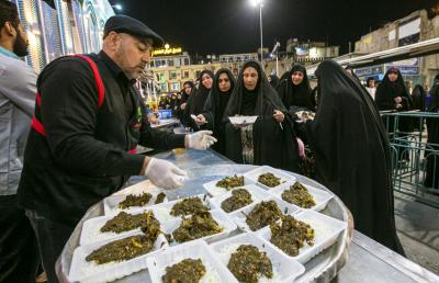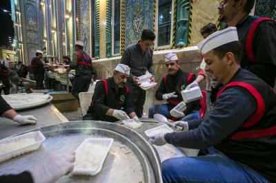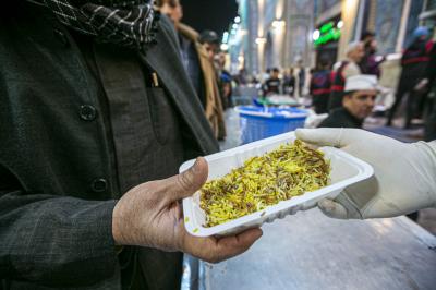 کھانے کی تقسیم کے لئے مخصوص اوقات مقرر ہیں ، پہلی بار نماز ظہرین کے بعد دوپہر کے کھانے کا دورانیہ ہوتا ہے اور زائرین کو ریسٹورنٹ کے ڈائینگ ہالز میں کھانا پیش کیا جاتا ہے۔