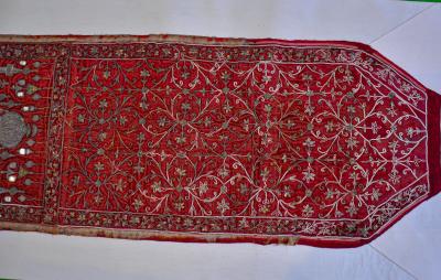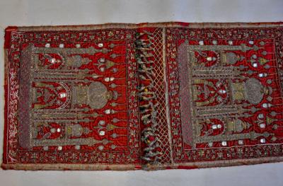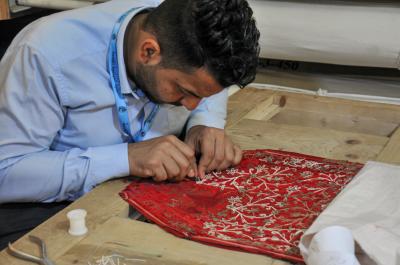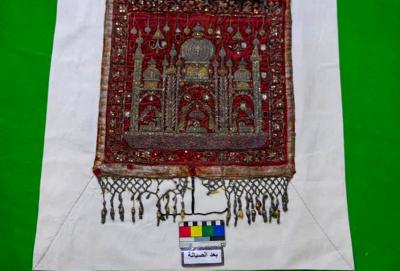 پرسنل فنی موزه الکفیل مرمت یک پرچم قدیمی دست دوزی شده به سبک هندی را که دارای نقوش گیاهی و معماری اسلامی و نقره دوزی شده است، به پایان رساندند.