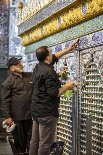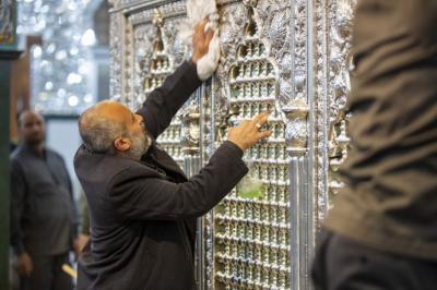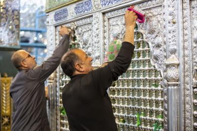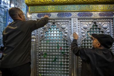 بعد اختتام الأعمال الخاصّة بتثبيت وتركيب تاج شبّاك ضريح السيّدة زينب(عليها السلام) في سوريا، الذي صُنع في قسم صناعة شبابيك الأضرحة المطهّرة التابع للعتبة العبّاسية المقدّسة، والذي أُزيح عنه الستار قبل يومين، شرعت الملاكاتُ الفنيّة التي أشرفت على هذه الأعمال وبمعيّة الوفد المرافق لها، بأعمال تنظيف وتعطير الشبّاك المطهّر لمرقد عقيلة بني هاشم (عليها السلام).