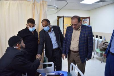 Ujumbe kutoka Atabatu Abbasiyya tukufu unao husisha wajumbe wa kamati kuu ya uongozi na marais wa vitengo umetembelea hospitali ya rufaa Alkafeel kuangalia hali ya majeruhi wa ajali ya mazuwaru wa bibi Zainabu (a.s) iliyotokea pembezoni ya mji mkuu wa Sirya Damaskas, baada ya kuwasiri katika hospitali hiyo asubuhi ya leo kupitia uwanja wa ndege wa Najafu.