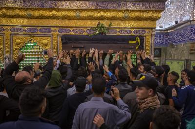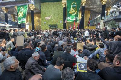 پس از زیارت ضریح مطهر حضرت عباس (علیه السلام)، اهالی کربلا با عبور از بین الحرمین به سمت حرم مطهر حضرت سید الشهداء (علیه السلام) مشرف شدند تا مراسم زیارت و تشییع جان باختگان را در آن آستان مطهر نیز برگزار نمایند.