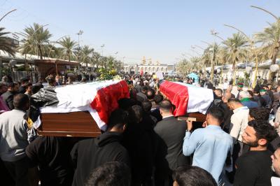 به گزارش شبکه جهانی الکفیل؛ اهالی شهر کربلا، خادمان دو آستان مقدس حسینی و عباسی، مسئولان ادارات کربلا، نیروهای امنیتی و خانواده جان باختگان در مراسم تشییع شرکت نمودند. نقطه شروع این تشییع از خیابان باب القبله حرم مطهر حضرت عباس (علیه السلام) به سمت حرم مطهر آغاز شد. در صحن مطهر عباسی، زیارت حضرت ابوالفضل العباس (علیه السلام)، زیارت امام رضا (علیه السلام) و زیارت حضرت صاحب العصر والزمان (عجل الله تعالی فرجه الشریف) قرائت شد و عزاداری حسینی برگزار شد.