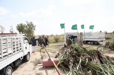 وأضاف: "إنّ المتبرّعين تمّ توزيعهم على قسمين؛ الأوّل قامَ بإخراج فسائل النخيل من البساتين والمزارع وجمعها في أماكن مخصّصة، والقسم الآخر قام بنقلها والمشاركة بغرسها في الطريق المذكور".