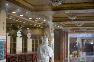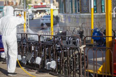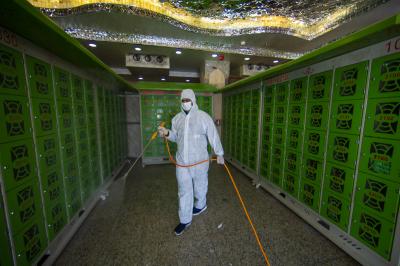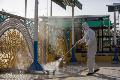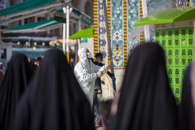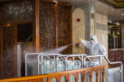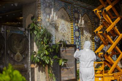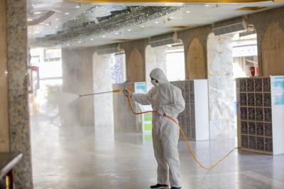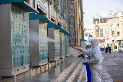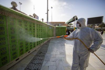 The official of the Division of Medical Affairs at the Holy Shrine, Dr. Osama Abdel-Hassan, told the al-Kafeel Network: “As part of the precautionary measures undertaken by the committee assigned by the al-Abbas's (p) Holy Shrine, and with exceptional efforts by the Engineering Maintenance Department and under the supervision of medical staffs, the outer circumference of the Sanctuary of Aba al-Fadl al-Abbas (peace be upon him) and the service facilities were sterilized, from safety deposit boxes, shoes depository (kishwaniyat), bag-keeping centers, and the entrances to the external gates of the holy sanctuary, as well as its wall from the outside.