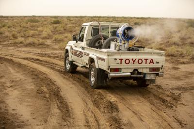Il a ajouté: "L'équipe affectée à ces actions a reçu du matériel spécial de lutte antiacridienne pulvérisé avec des roues montées sur véhicules, en plus de l'utilisation de drones, et les activités de lutte sont toujours en cours et conformément au plan élaboré à cet effet."